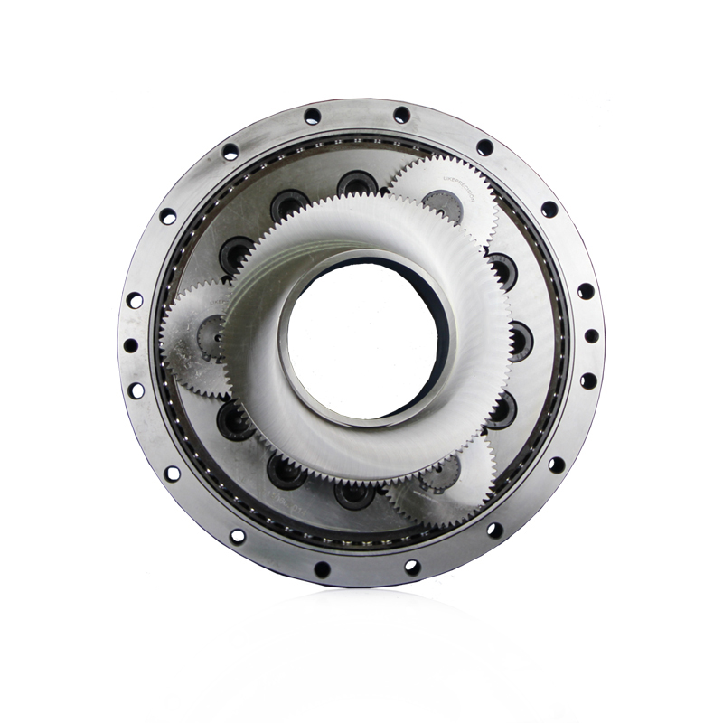 直齒輪與曲柄軸相連接,變?yōu)榈诙p速部的輸入。在曲柄軸的偏心部分,通過滾動軸承安裝RV齒輪。另外,在外殼內(nèi)側(cè)僅比RV齒輪數(shù)多一個的針齒,以同等的齒距排列。